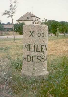 Inschrift: "X oo MEILEN VON DESSAU" |