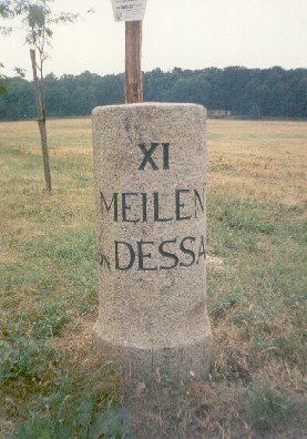 Inschrift: "XI MEILEN VON DESSAU" |