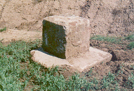 Durch den Bau der Autobahn A 14 ist es notwendig geworden, die B 6 umzugestalten. Nahe des Abzweiges Lettewitz wurde eine rechte Abbiegespur eingefügt, wodurch der preußische Meilenstein Nr. 37 unsachgemäß zur Seite geschafft und an zwei Ecken stark beschädigt wurde. Gleichzeitig trat dadurch aber eine Grundplatte zutage. In der Mitte befindet sich eine Zentrierungsvertiefung (51 x 51 cm). Der dafür an der Unterseite der Viertelmeilenwürfel ausgearbeitete Vorsprung (49 x 49cm) ist noch gut am preußischen Meilenstein Nr. 31 Golbitz zuerkennen. (siehe Fotos) |